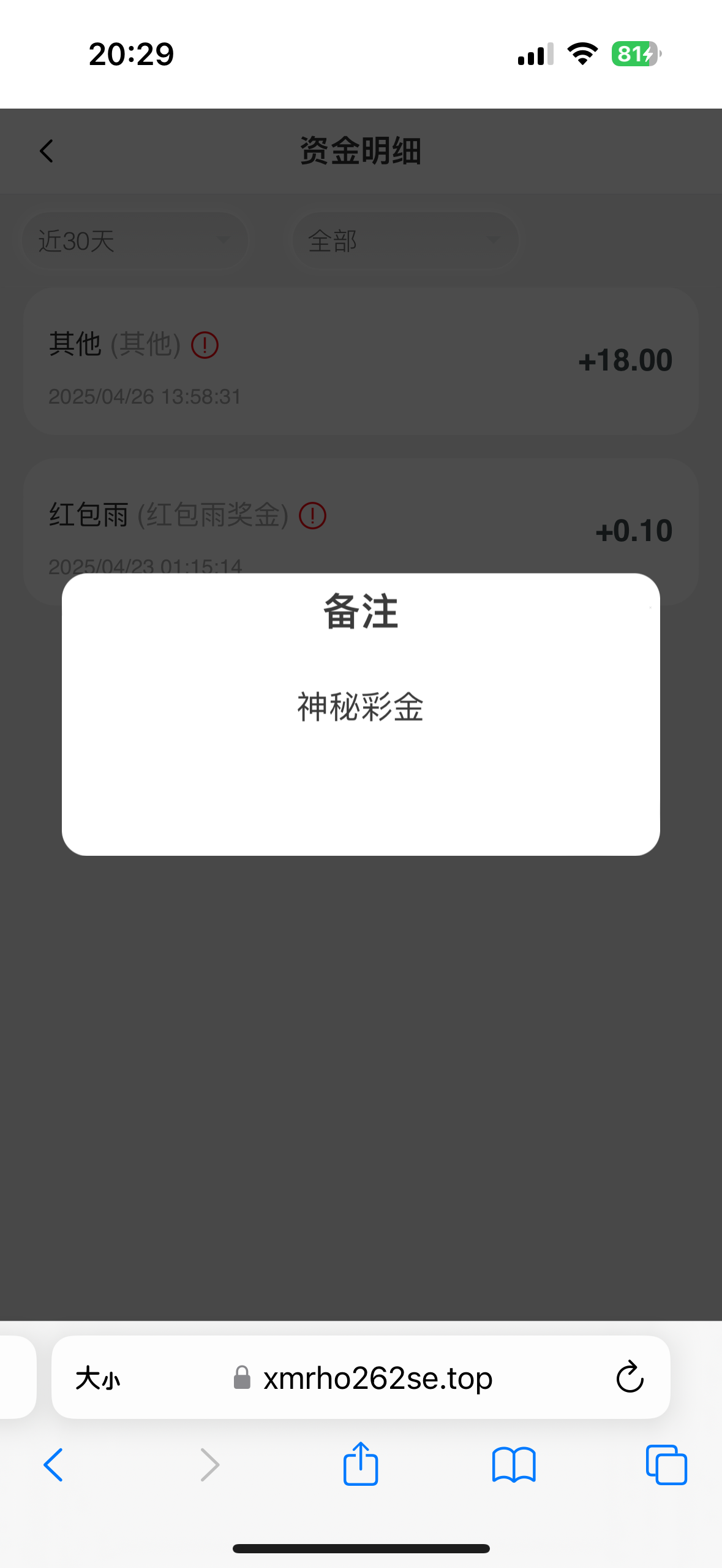 刚刚看到短信提示已注册过然后登陆看到有18块4月份送的,我没充值过 地址 01vvv.top