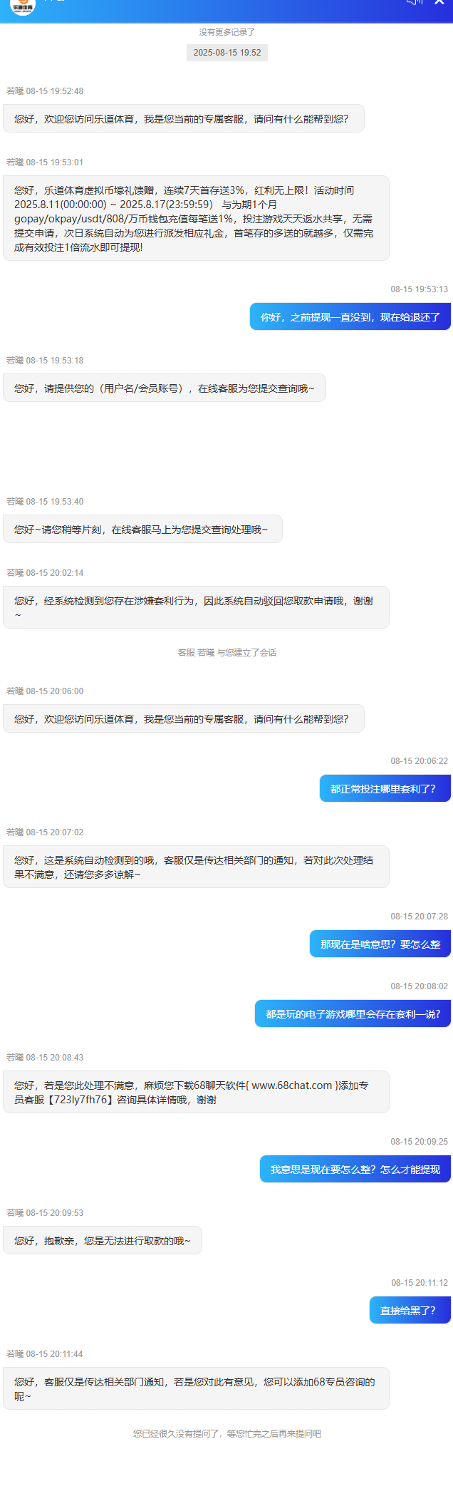 玩了快一年的乐道体育还是被黑了,都是玩的电子,确定无疑黑台一个
