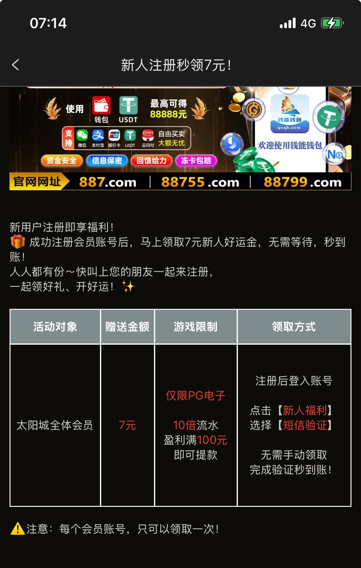 【太阳城887】注册送7