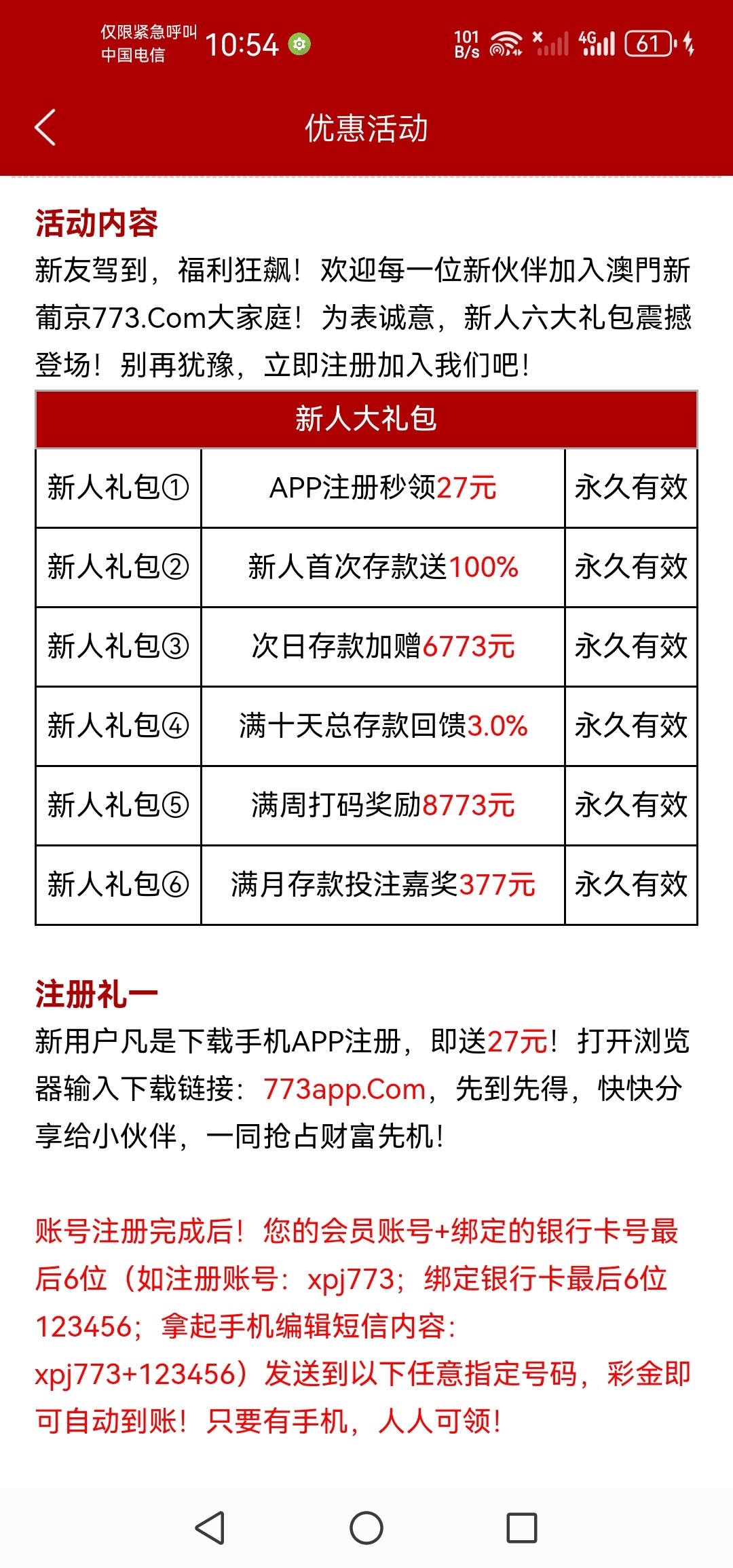 本人玩了半年充值提现都很稳定,手机号码特邀送37,下载app送27,我几个号码都搞过。网站773.com