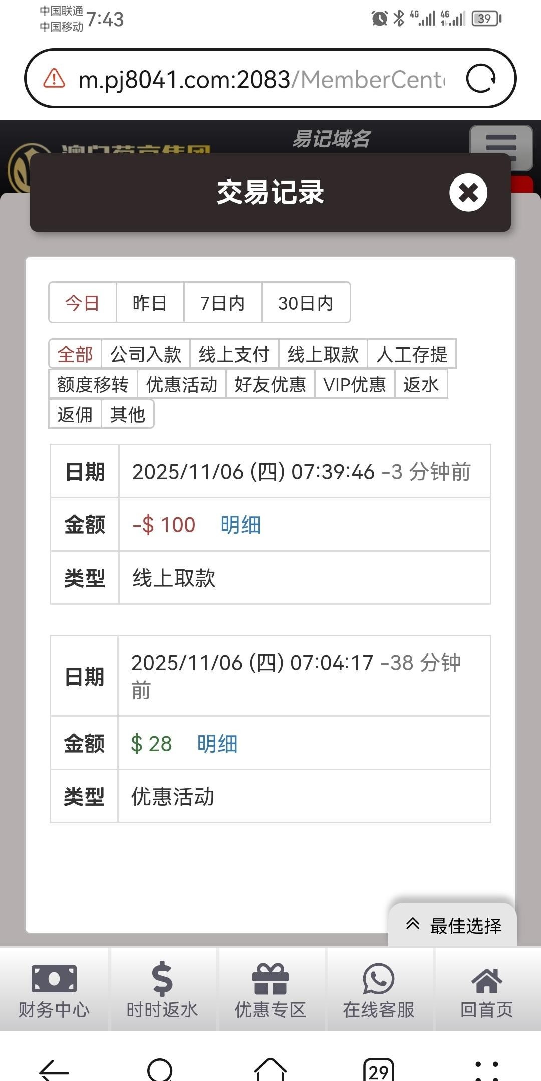 链接047.com 特邀送28,电话来的,不知道查不查,你们试试吧,有没有漏接的,找客服申请,直接爆id,跟他说申请电话回访特邀,我提100,切勿充值。有没有勿喷,只是怕有漏接的老哥没领到福利