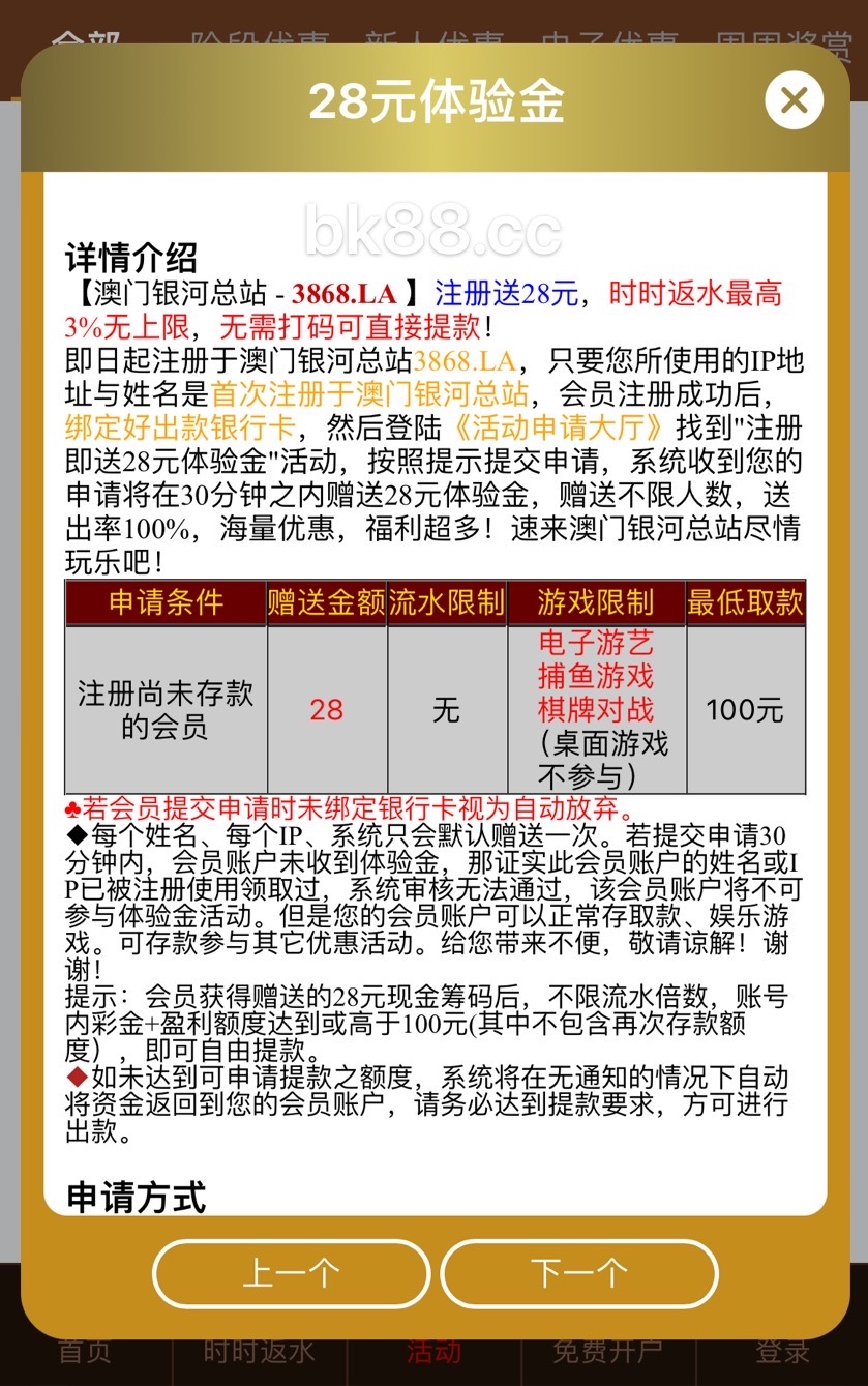新用户注册绑卡优惠大厅自助申请新人彩金送28元/100元提现。半小时没送无视即可。