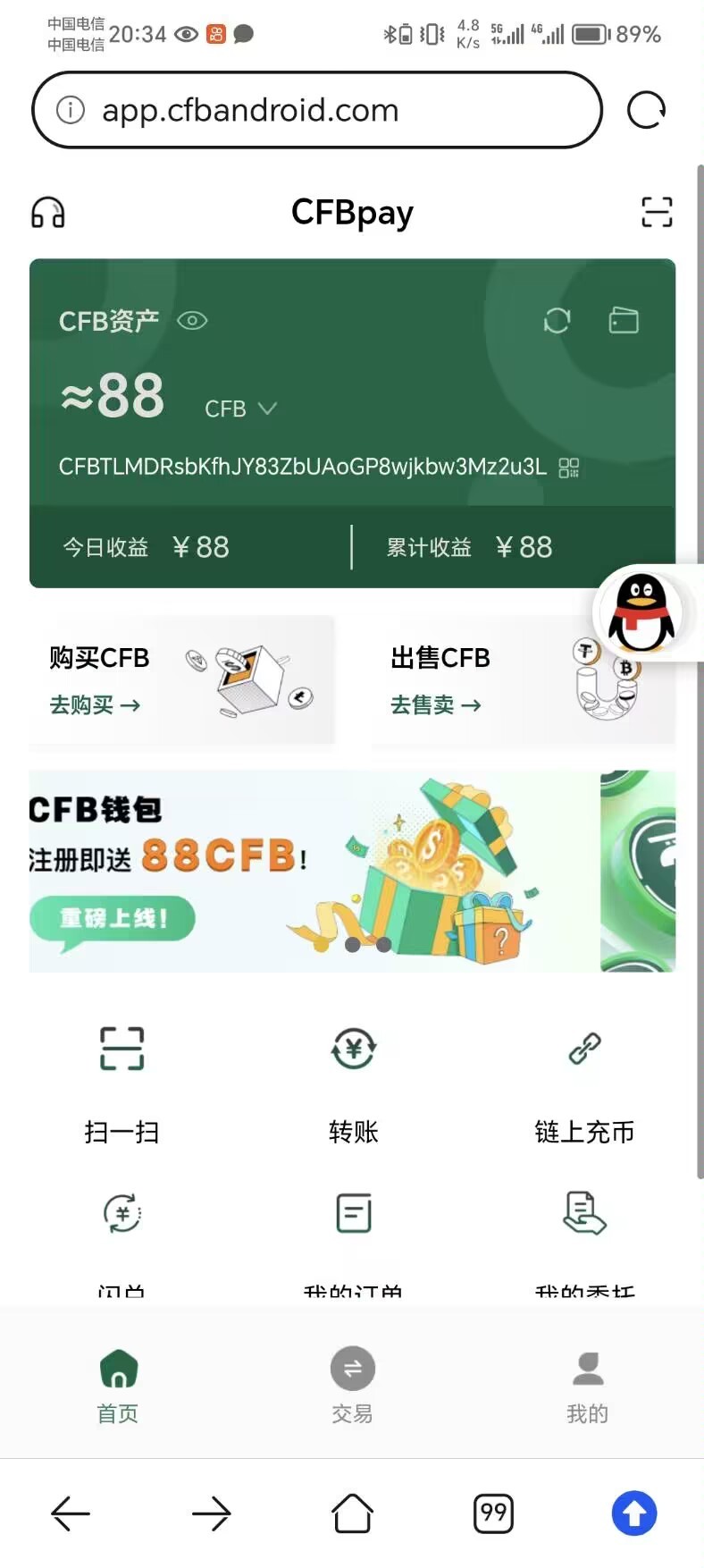CFBpay钱包送88