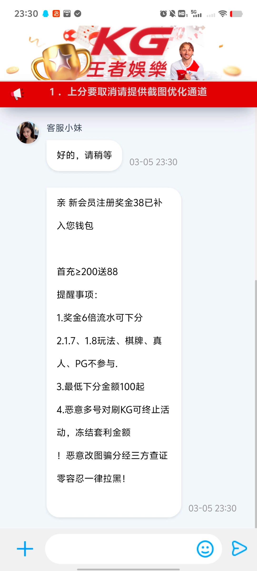 去找客服说注册送38彩金,然后绑定信息跟客服说,就送了,出款上限200 自测